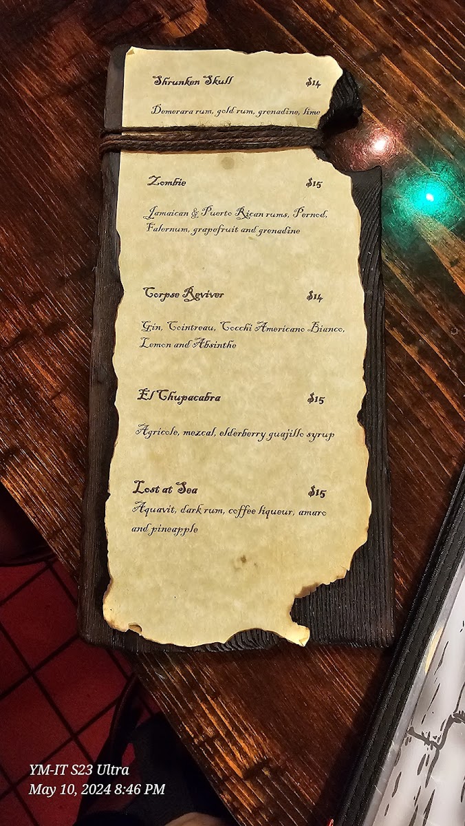 Bottoms Up, Tangy & PowerfulLime, Lemon, Orgeat, Curacao, Light and Jamaican Rum with an Overproof Rum Float